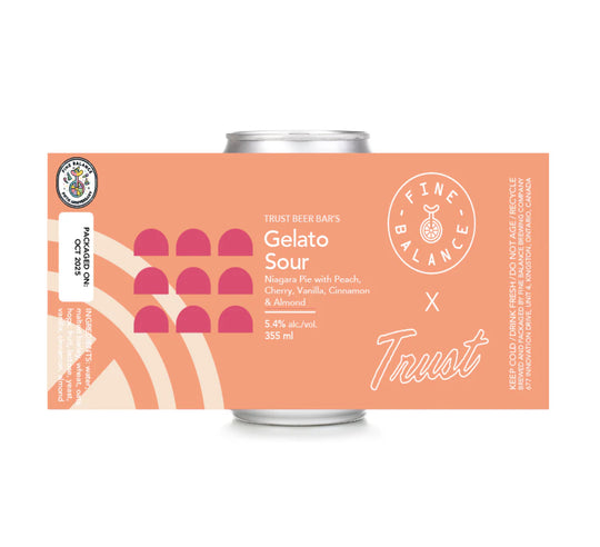 Made in collaboration with our good friends at Trust Beer Bar in St. Catharines, this special edition in our fifth anniversary Gelato Sour Series features large additions of peach and cherry, alongside a touch of vanilla, cinnamon, and almond. The result is a fruity, thick pastry sour that's just perfect for an anniversary celebration.